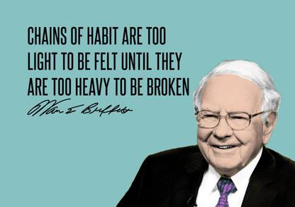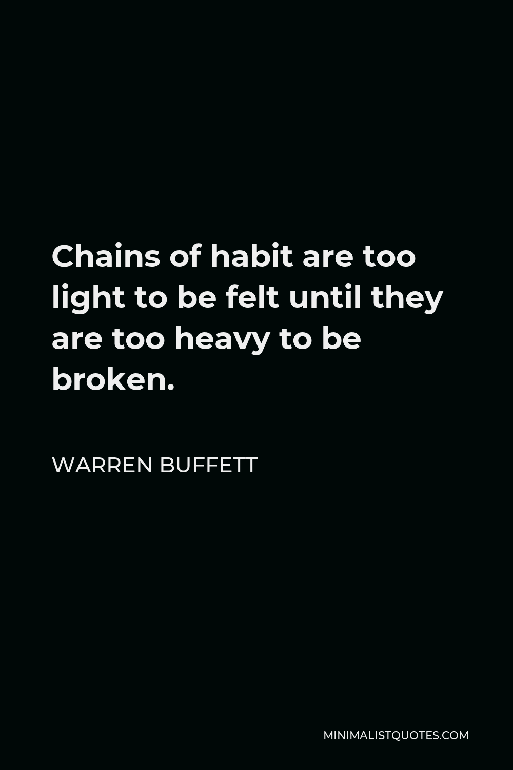 Chains of habit are too light to be felt until they are too heavy to be broken. Laura recently talked to some friends about the practices they put in place to limit their attachment to their phones and she thought we would benefit from one of them. The chains of habit are too light to be felt until they are too heavy to be broken This is Warren quoting the English philosopher Bertrand Russell because his words so aptly describe the insidious nature of bad business habits that dont become apparent until it is too late. Chainscc is an online motivational tool based on the dont break the chain method that helps you build good habits and break bad ones. For any of you who have struggled in the stranglehold of a nasty bad habit yes that means all of us then youll know just what devastation incarceration-by-bad-habit can bring. The punchy aphorism most memorably used by Warren Buffett in recent years is often attributed to Samuel Johnson. 20 Managers and Markets pp. The chains of habit are too weak to be felt until they are too strong to be broken. Each day you complete a task you want to keep up a visual streak grows.